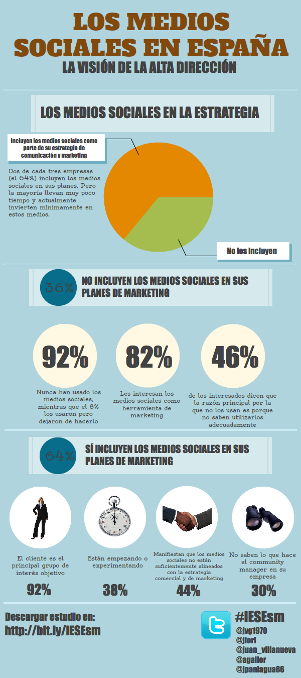He creado esta infografía con alguno de los datos recogidos en el estudio sobre el uso de los medios sociales por parte de las empresas españolas. A ver qué os parece.